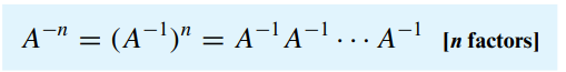 - 그리고 A가 가역이면 A의 음의 정수에 대한 거듭제곱도 다음과 같이 정의합니다.