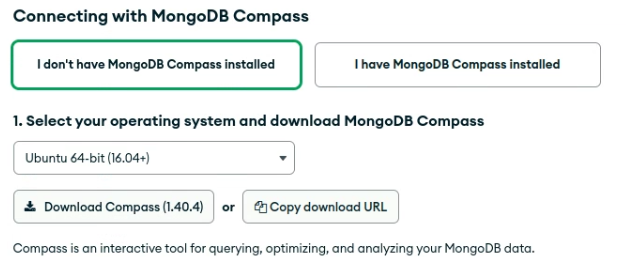 - Cluster connect 창에서 2번에 있는 url을 복사해 옵니다.(Compass Download 밑에 있는 2번 URL)