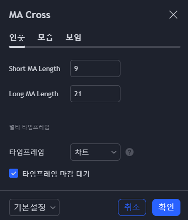 - 해당 지표나 전략의 이름을 더블클릭하게 되면 지표, 전략 설정을 변경할 수 있는 창으로 이동하게 됩니다.