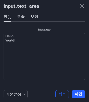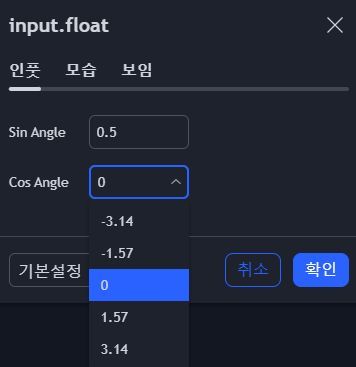 - "input"로 설정된 값들은 입력 시(즉, 스크립트의 "설정/입력" 탭에서 값을 변경할 때)에 사용할 수 있습니다.