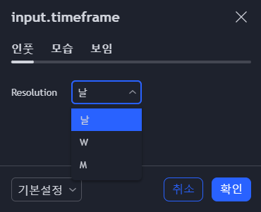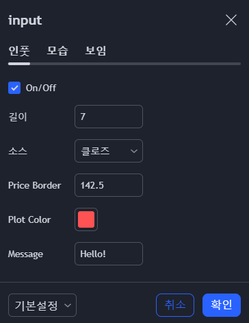 - 위와 같이 input을 설정해 두면 해당 지표/전략 설정 부분에서 값을 손쉽게 변경이 가능합니다.